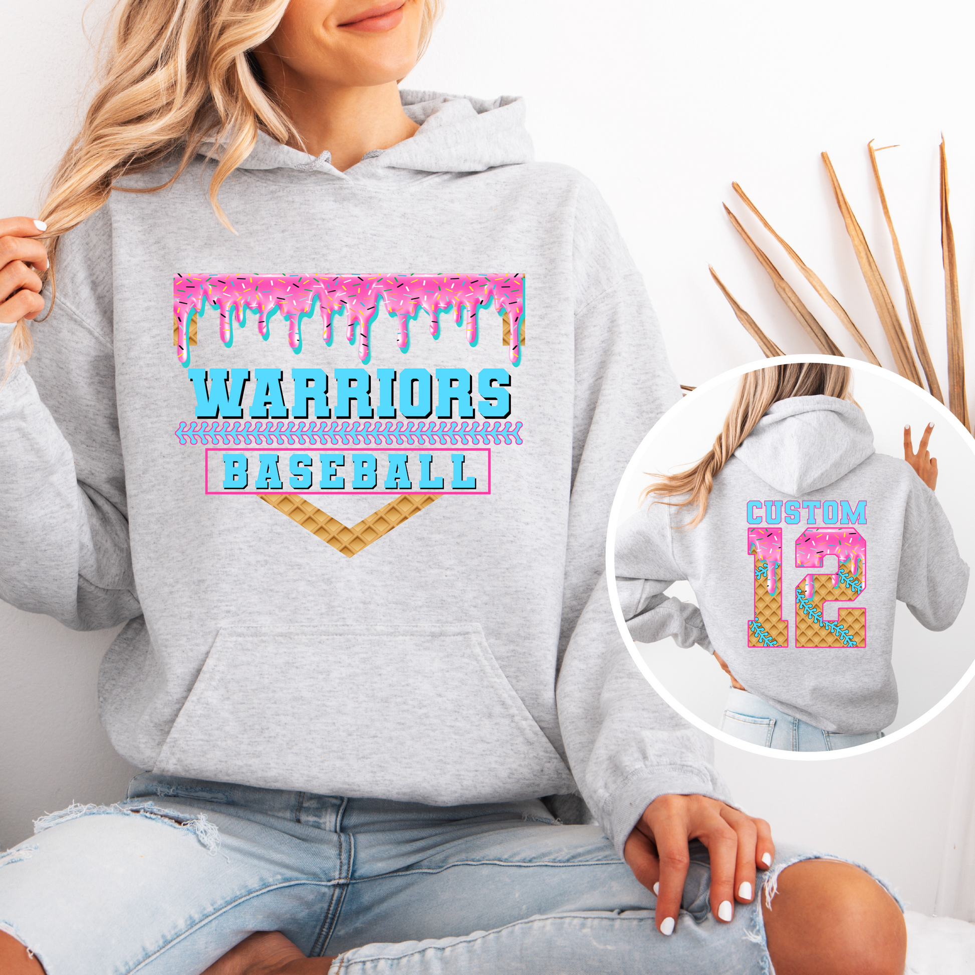 Respect the drip with this fun Warriors Baseball sweatshirt! Customize with your name and number!