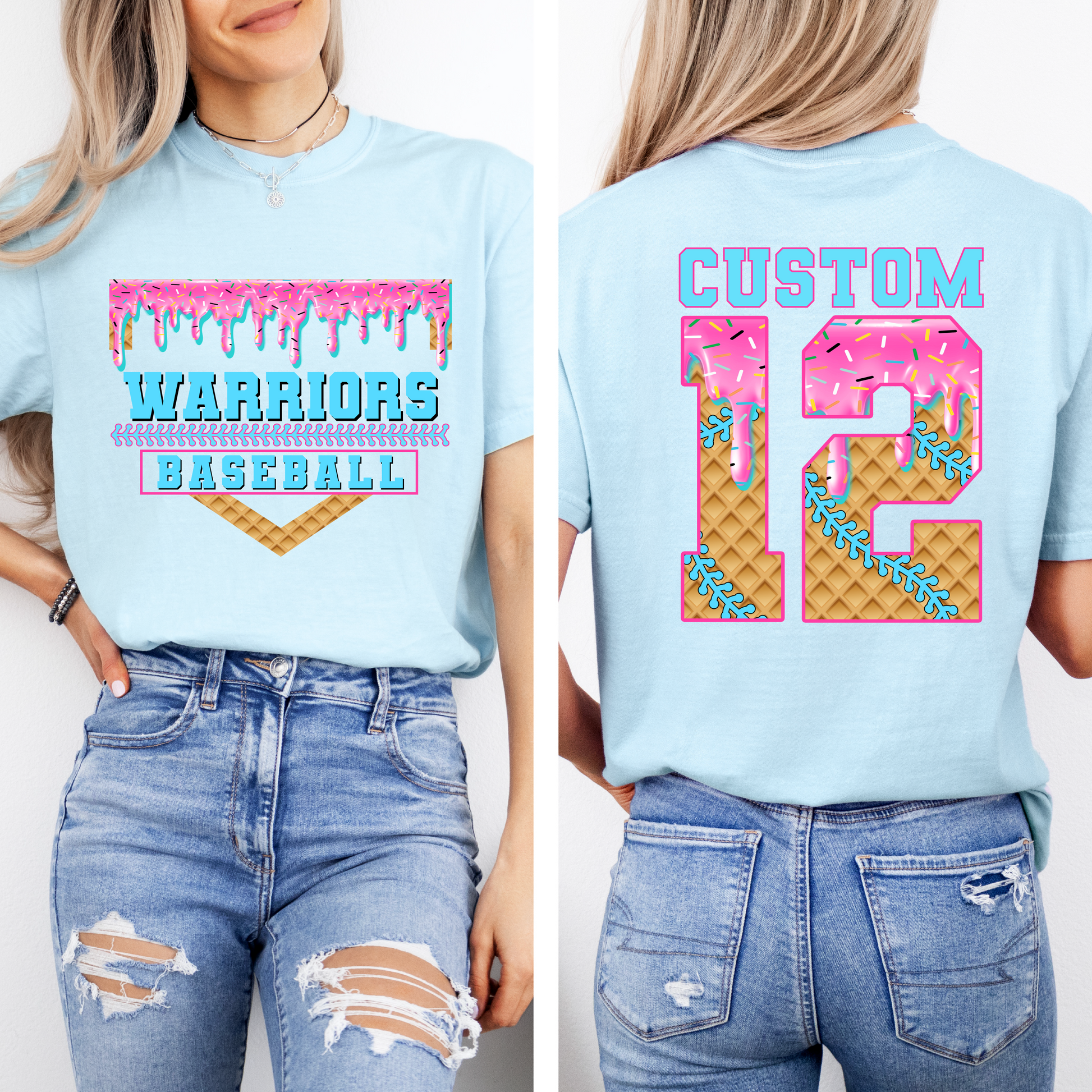 Respect the drip with this fun Warriors baseball tee! Customize with your name and number!