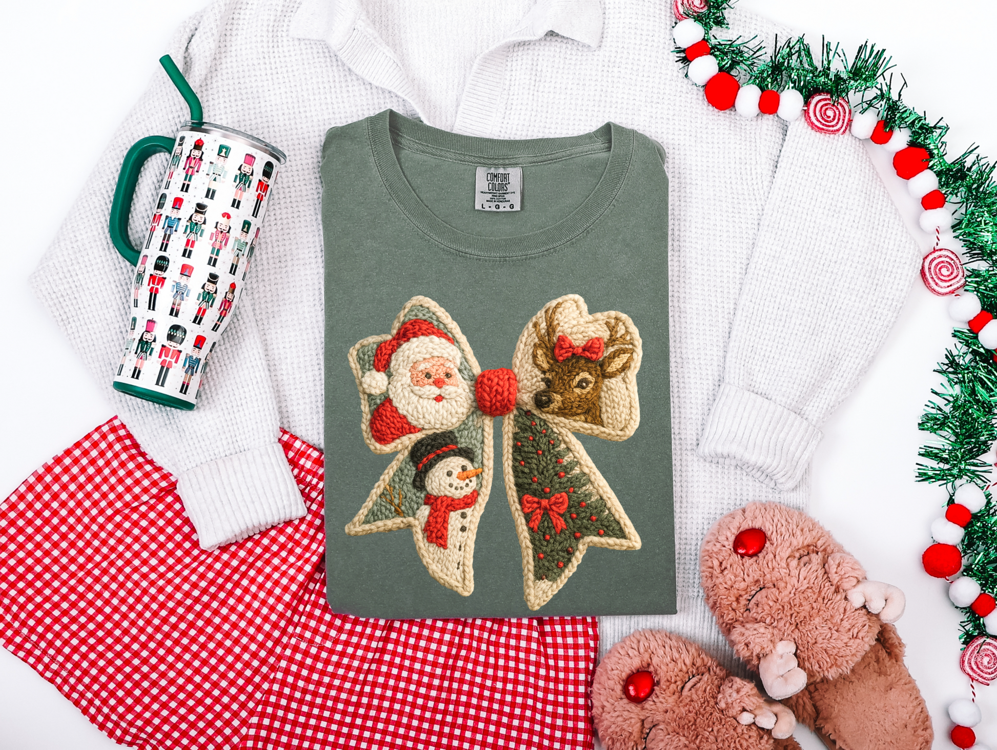 Bring a little Christmas spirit to your day with this fun faux yarn coquette shirt!