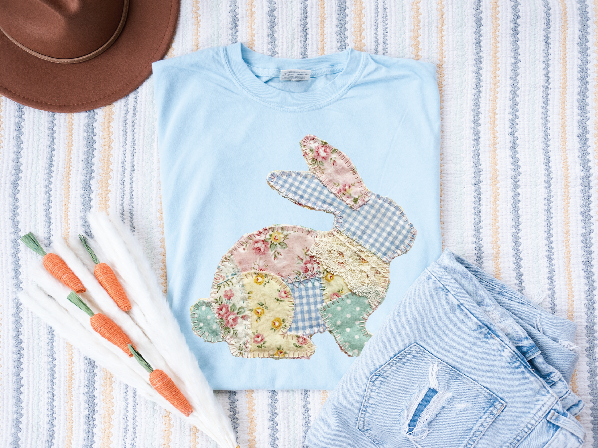 Here comes the Easter bunny on this FAUX quilted bunny tee!